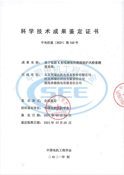 2021年7月20日,中國(guó)電機(jī)工程學(xué)會(huì)組織召開(kāi)了該產(chǎn)品的技術(shù)鑒定會(huì),鑒定委員會(huì)認(rèn)為:項(xiàng)目成果攻克了燃煤鍋爐風(fēng)粉量在線精準(zhǔn)測(cè)量的重大難題,為煤粉燃燒鍋爐均衡燃燒控制、低負(fù)荷穩(wěn)定燃燒和變負(fù)荷靈活運(yùn)行提供了重要技術(shù)支撐,具有良好的應(yīng)用前景和社會(huì)經(jīng)濟(jì)效益。整體技術(shù)居國(guó)際領(lǐng)先水平。